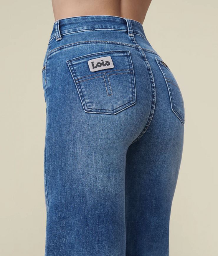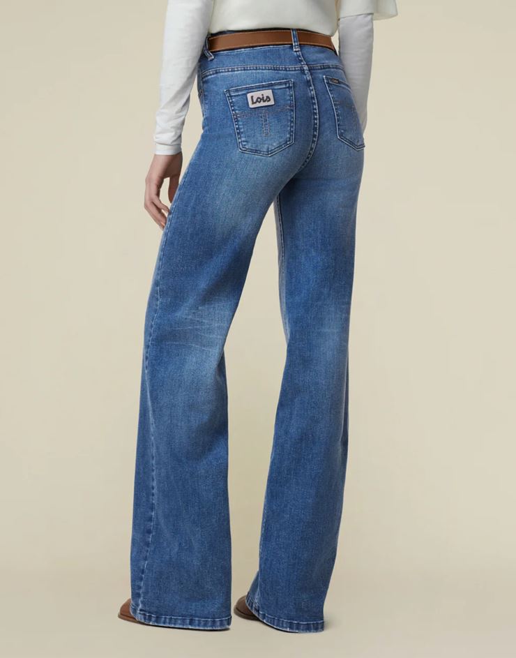 Palazzo - Re Ram Cobalt från spanska varumärket Lois. Vida jeans med hög midja i en snygg ljusblå med mycket stretch. Perfekt passform.