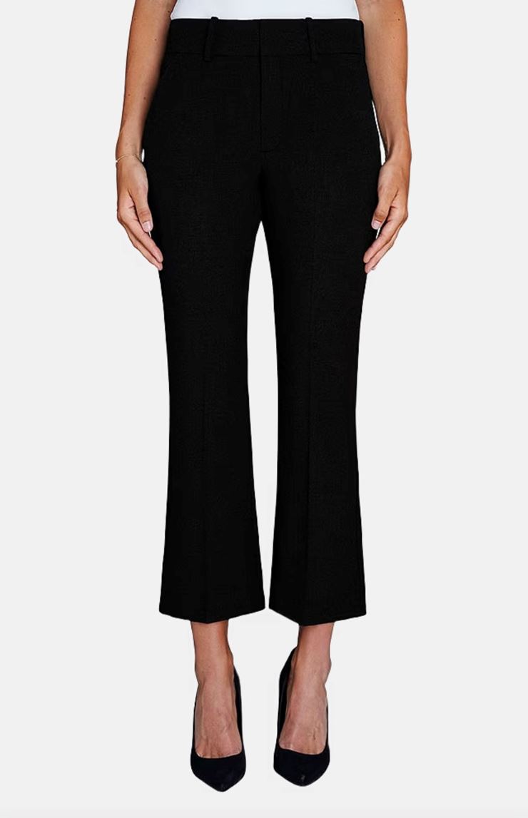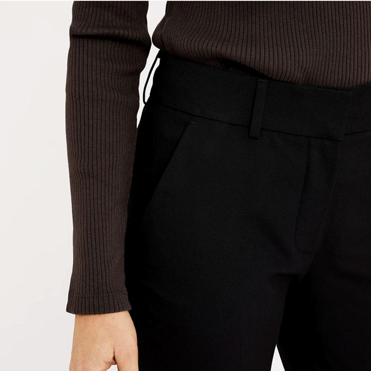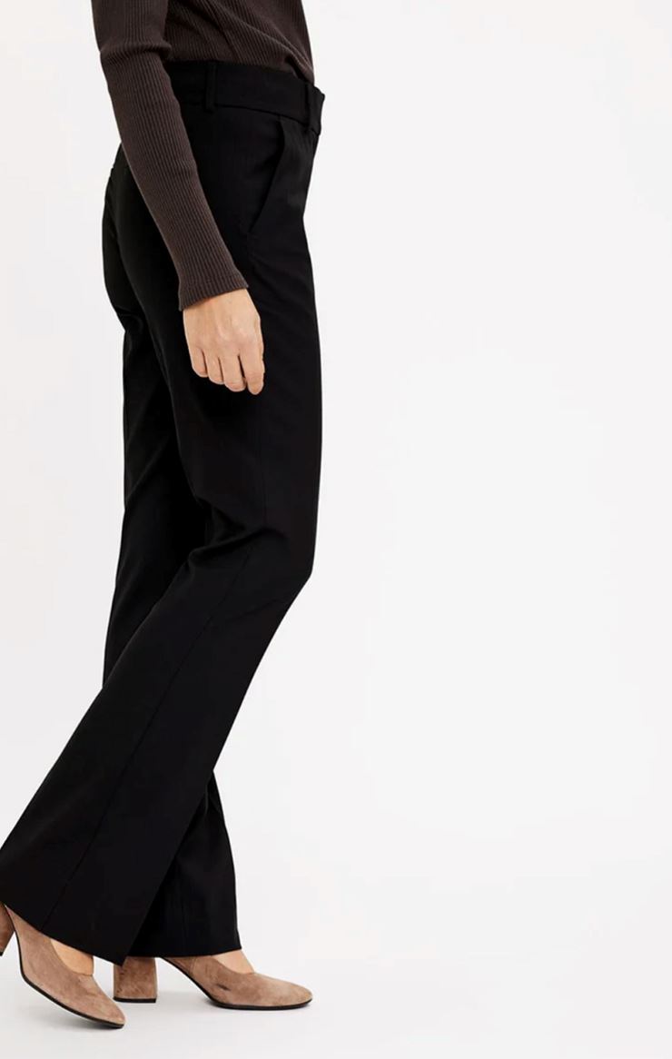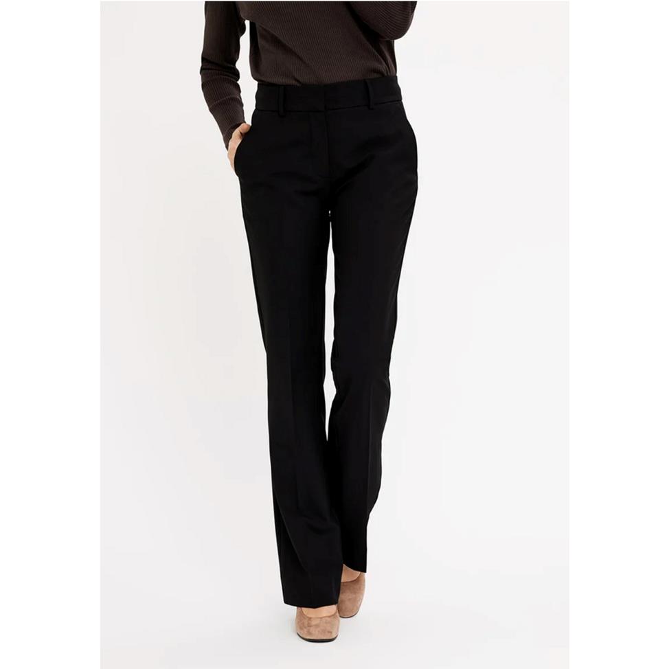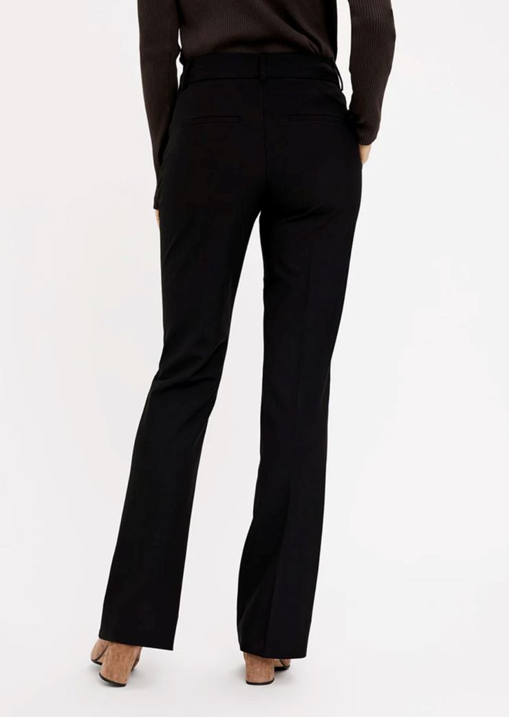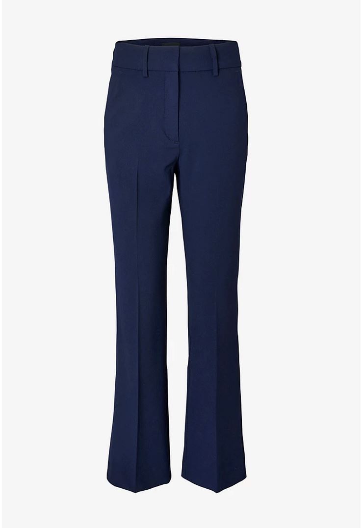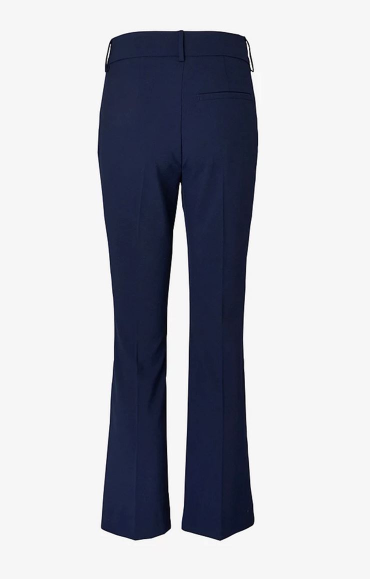 Utsvängda kostymbyxor med pressveck och normalhög midja med bred linning. Figurnära passform upptill och lätt utsvängda från knäet och ned. Dold gylf och knäppning. Mjukt dressat tyg med följsam stretch. Kombinera med kavajen Hannah eller Frida för en hel kostymlook.