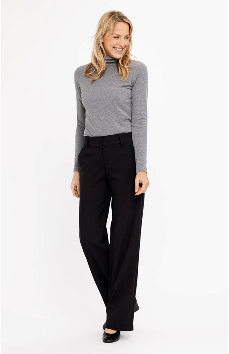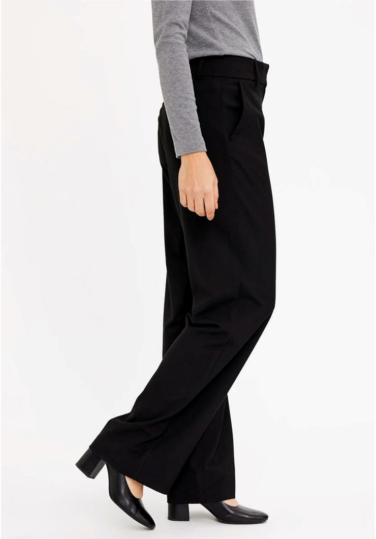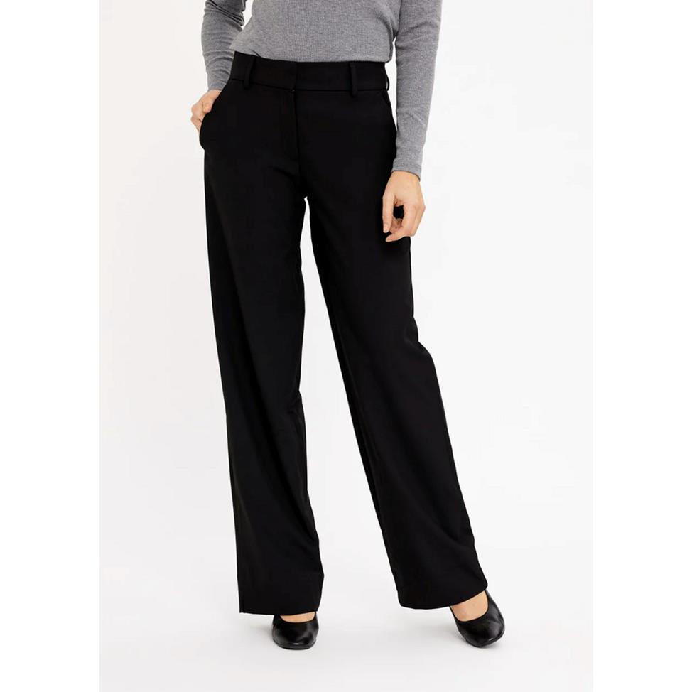 Vida kostymbyxor med normalhög midja med bred linning. Dold gylf och knäppning. Mjukt dressat tyg med följsam stretch. Kombinera med kavajen Hannah eller Frida för en hel kostymlook.