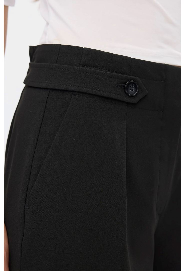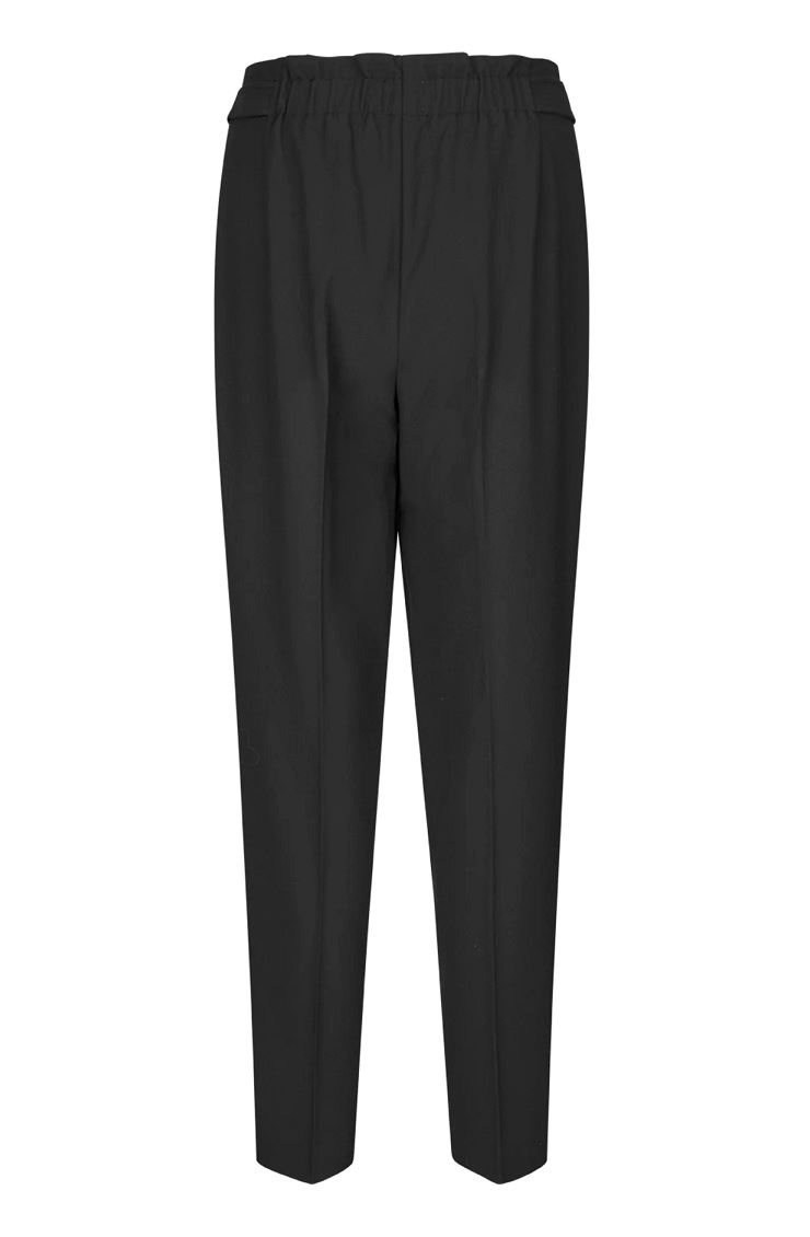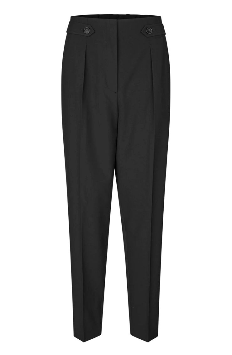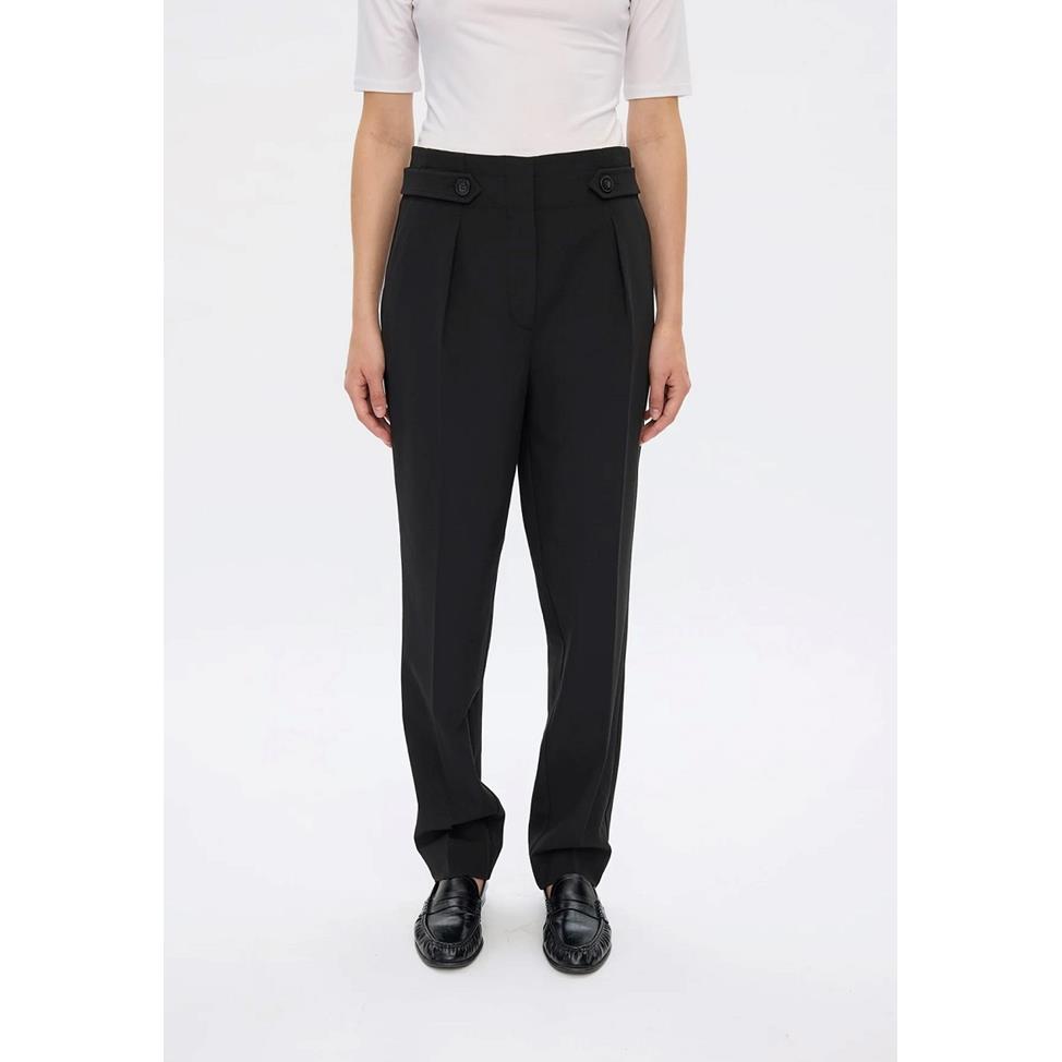 EmiliaFV är eleganta kostymbyxor med hög midja och en sofistikerad, lätt avsmalnande passform från knä till fot. Den elastiska paperbag-detaljen baktill ger både komfort och en strukturerad silhuett. Pressveck längs benen skapar ett dressat uttryck, medan snedfickor framtill ger praktisk funktion. Knäppbara bältesremmar i sidorna markerar midjan för en feminin och stilren look. Perfekta byxor för både kontor och fest. Kombinera med kavajen Hannah eller Frida för hel kostym.