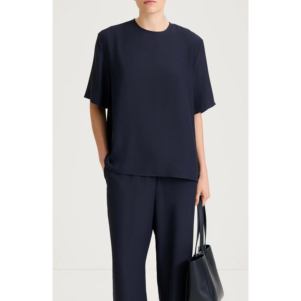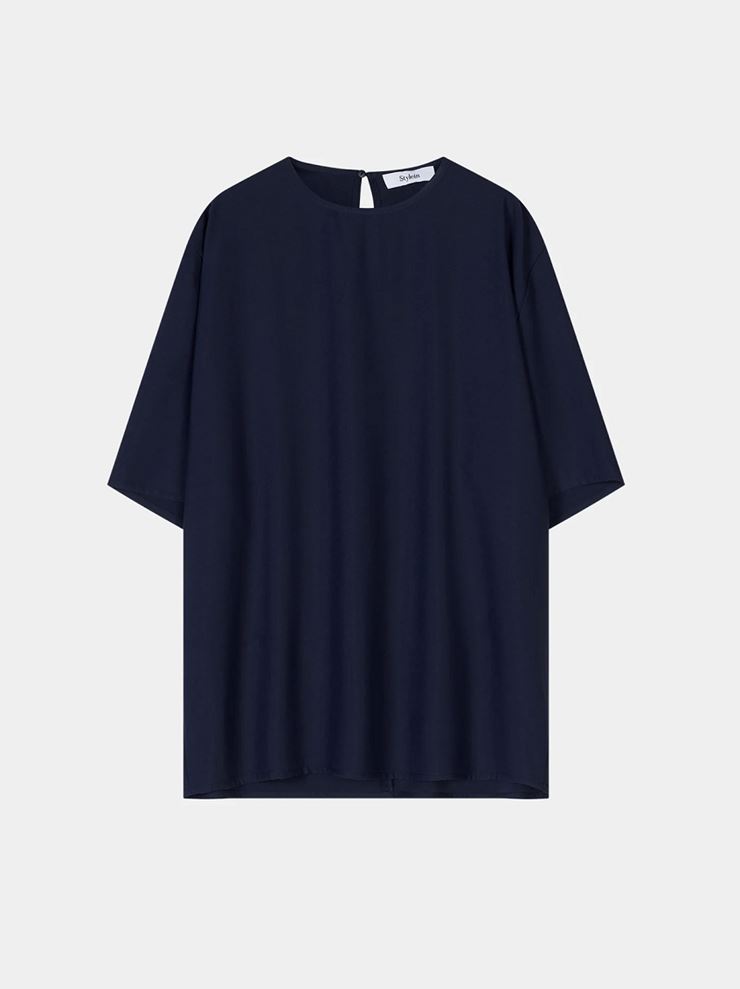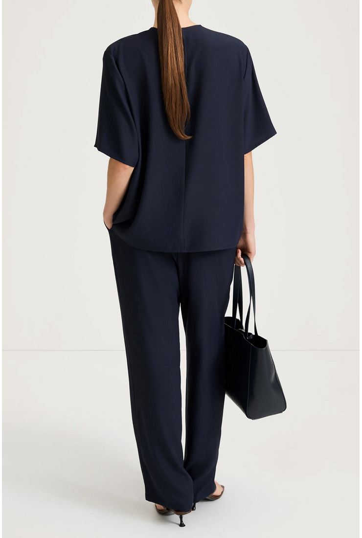 Martano Blouse är en elegant oversize-blus i lyxig polyester matt crepe med ett mjukt och följsamt fall. Den har rund halsringning samt en stilren söm mitt bak med diskret nyckelhålsöppning, knapp och elastisk ögla. Ett tidlöst och mångsidigt plagg som passar både till vardag och mer uppklädda tillfällen. Kombinera med Meike Trousers för att bära som set.