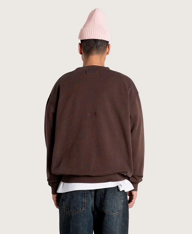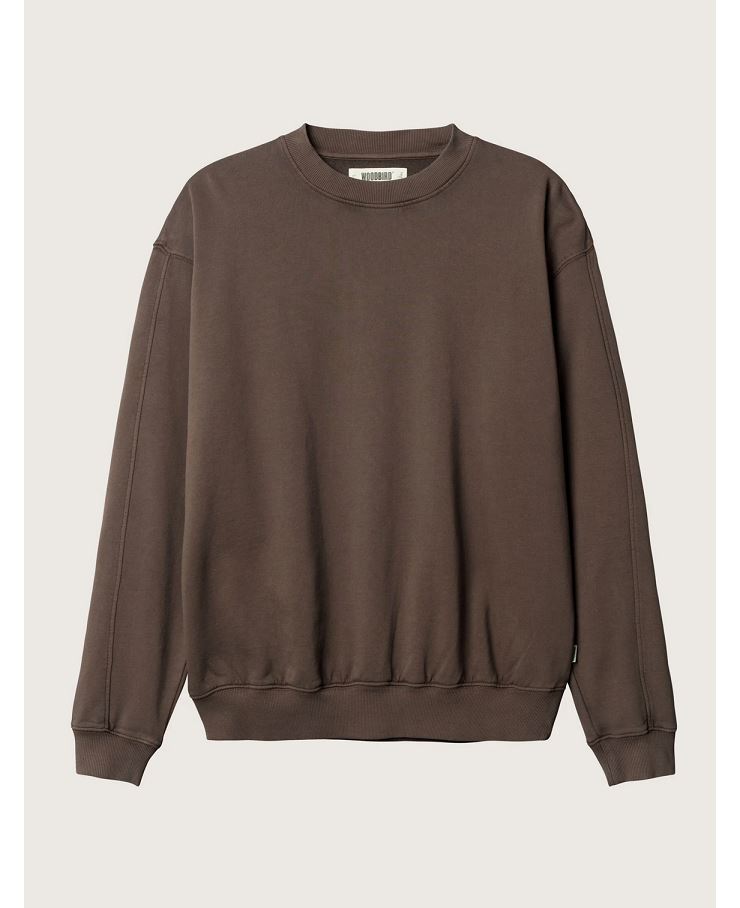 Sweatshirt från Woodbird. Klassisk modell med lös avslappnad passform. Mörkbrun bomullskvalitét med en snygg tvättad finish. Diskret broderad logga mitt bak.