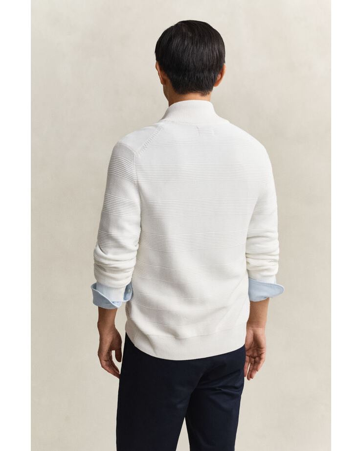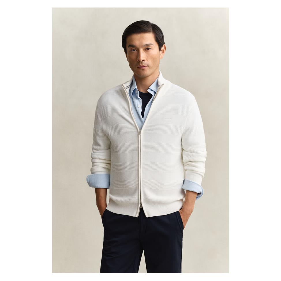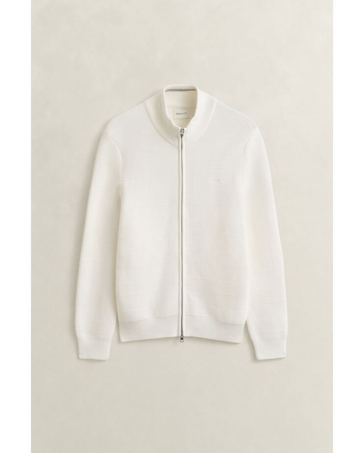 Stilren och bekväm bomullscardigan med struktur och dragkedja i regular fit. Tillverkad i mjuk bomull med ribbstickade muddar och hög krage för en skön passform och en tidlös look. Perfekt som lager-på-lager-plagg för både vardag och jobb.