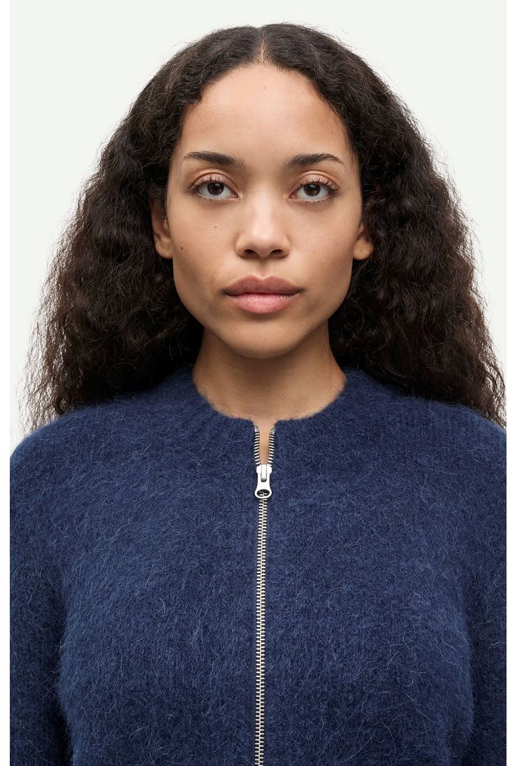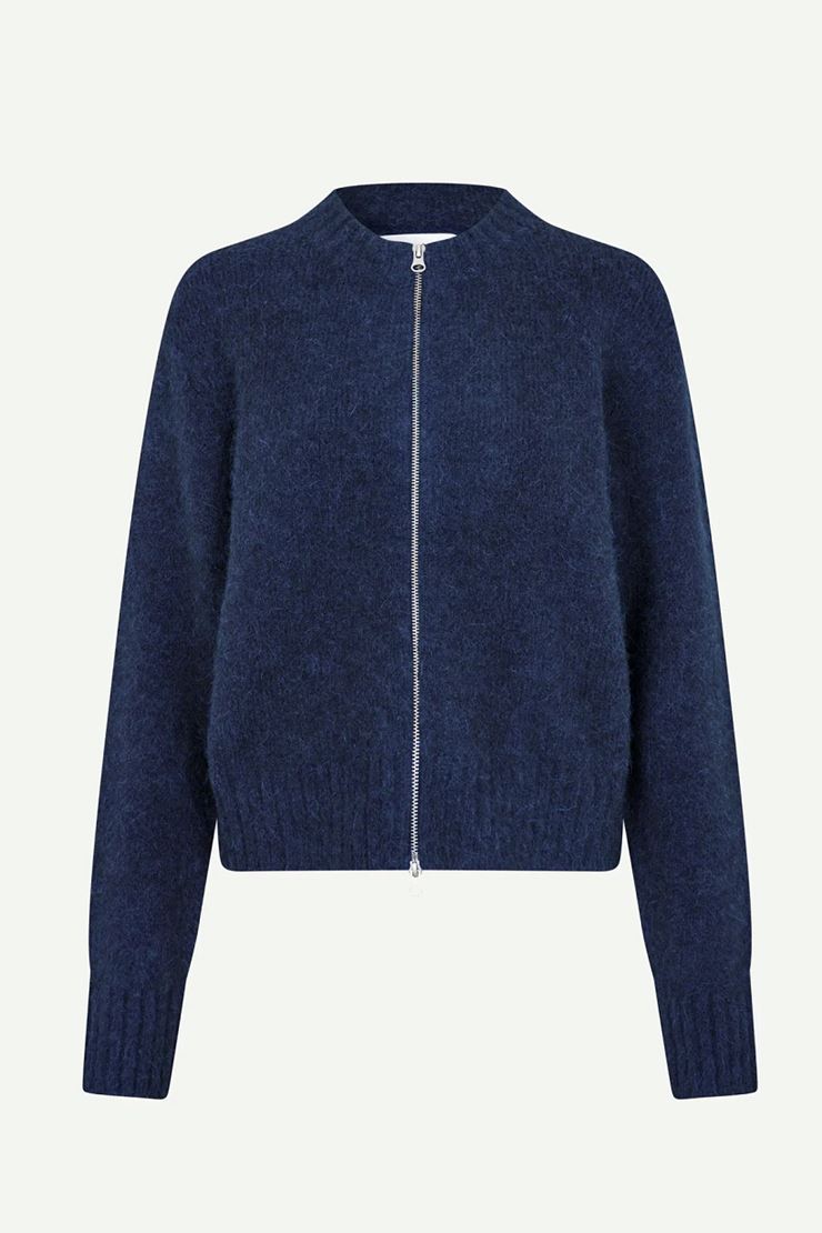 Stickad kofta i en fin och mjuk ullmix. Rak passform med silverfärgad tvåvägs-zip framtill. Rundad hals med ribbstickade avslut.